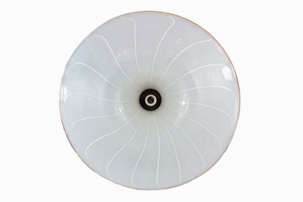 In vetro opalina, a striature orizzontali bianche e bordo color caramello.