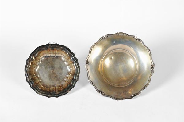 Lotto di 2 vassoi in argento 800/1000, Italia, seconda metà XX secolo