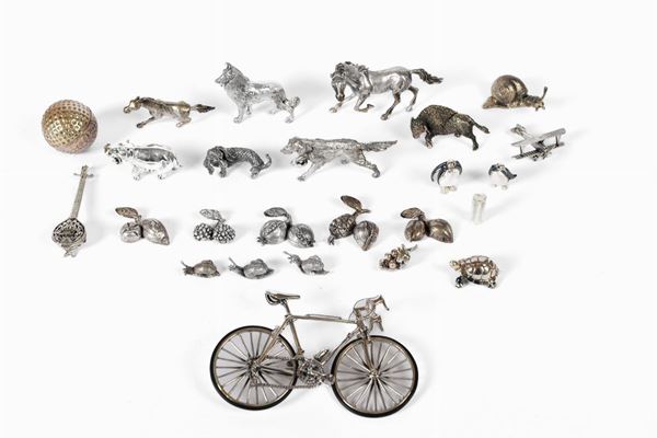 Lotto di 24 oggetti in argento 800/1000, Italia, seconda metà XX secolo