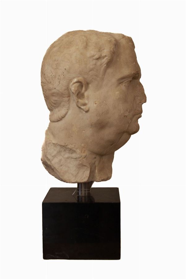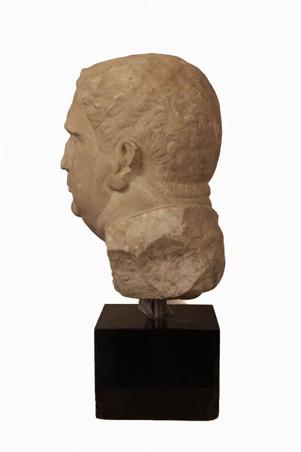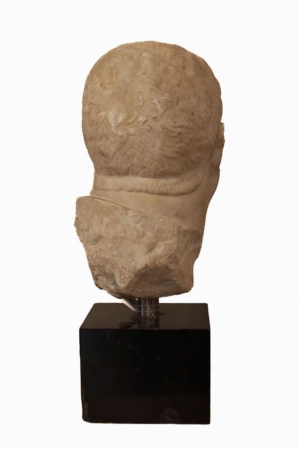 Scultura in volume in marmo pario. Su base in marmo nero. Ripresa dall'antico. Parti mancanti e abrase.