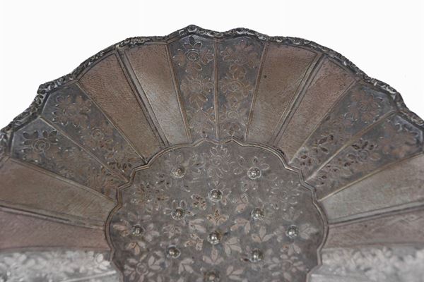 Bordo mistilineo con finiture a incisione con fiori e fiorellini. Peso 356 gr.