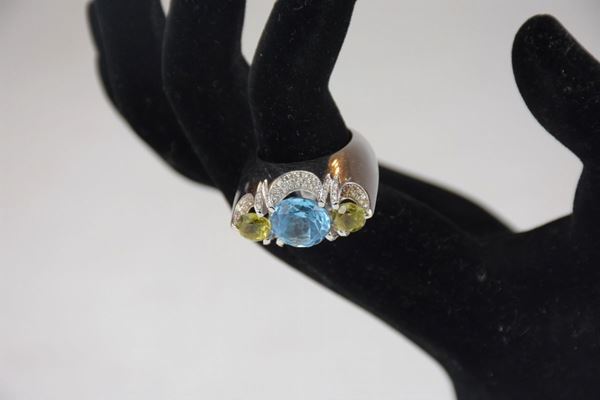 Anello in oro bianco, brillanti e topazio - "Pasquale Bruni"