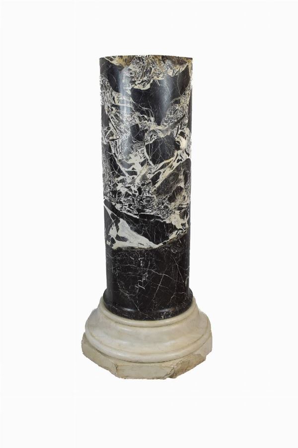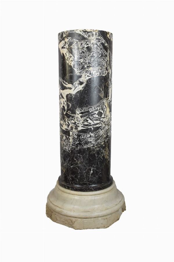 In marmo bianco e nero di Aquitania, con basamento ottagonale in marmo bianco statuario. Piccole mancanze alle basi ottagonali