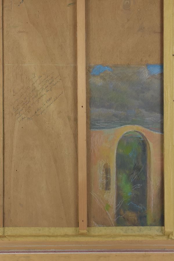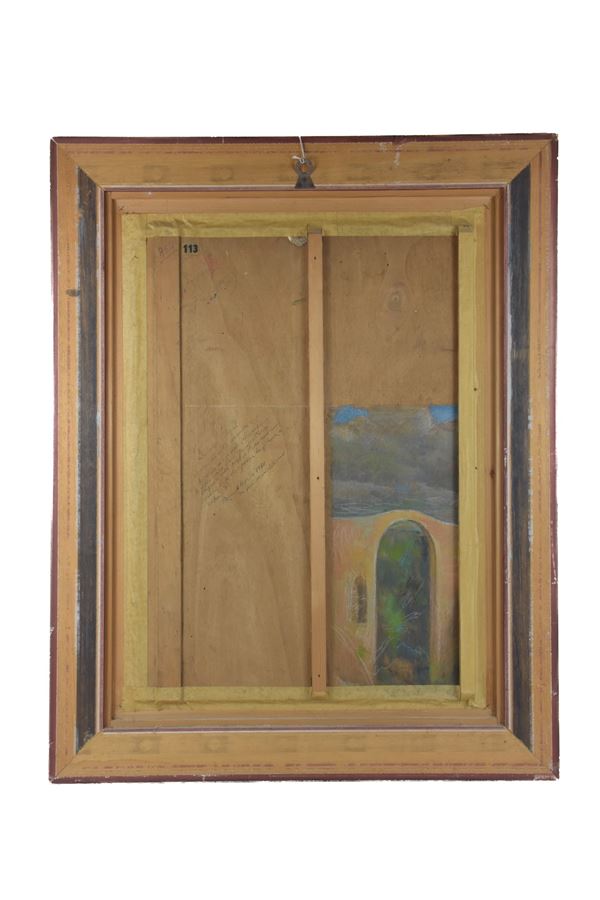 Dipinto double face. A fronte: la morte a cavallo, dipinto ad olio su tavola, di cm 70 x 50. A tergo, paesaggio dipinto a pastello con dichiarazione di Mario Liberati che attribuisce l'opera al pittore romano Giuseppe Carosi. Eseguita nel 1964. In cornice coeva