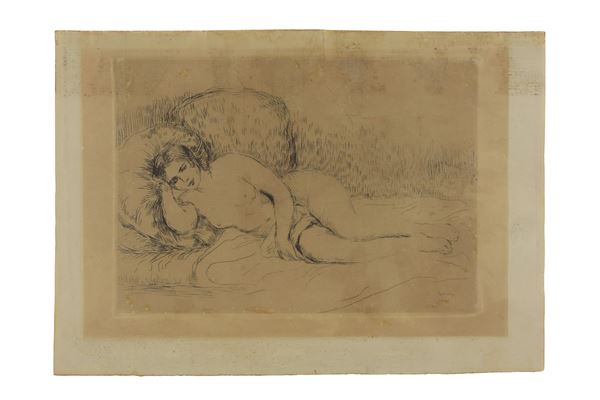 Si presenta un probabile secondo stato della celeberrima acquaforte di Renoir del 1906, pubblicata ne "L'Histoire des Peintres Impressionists" di Theodore Durette