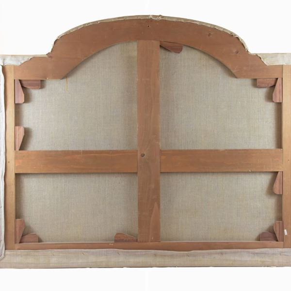 Il dipinto, verosimilmente un sovrapporta, è stato rifoderato e reintelaiato.