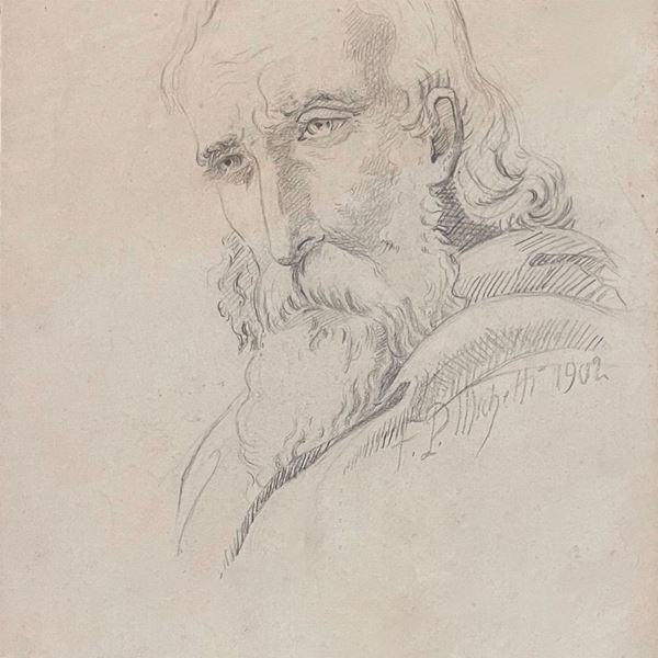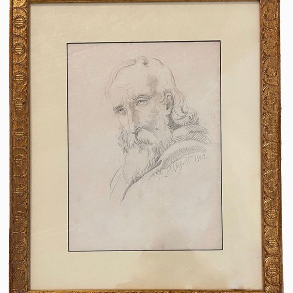 Di cui uno raffigurante "Ritratto di anziano", in carboncino su carta, dimensioni: 30 x 22 cm; firmato e datato "F. P. Michetti 1902.