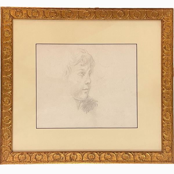 Il secondo raffigurante "Ritratto di fanciullo", in carboncino su carta, dimensioni: 20 x 24 cm; firmato in basso a destra "Michetti".
