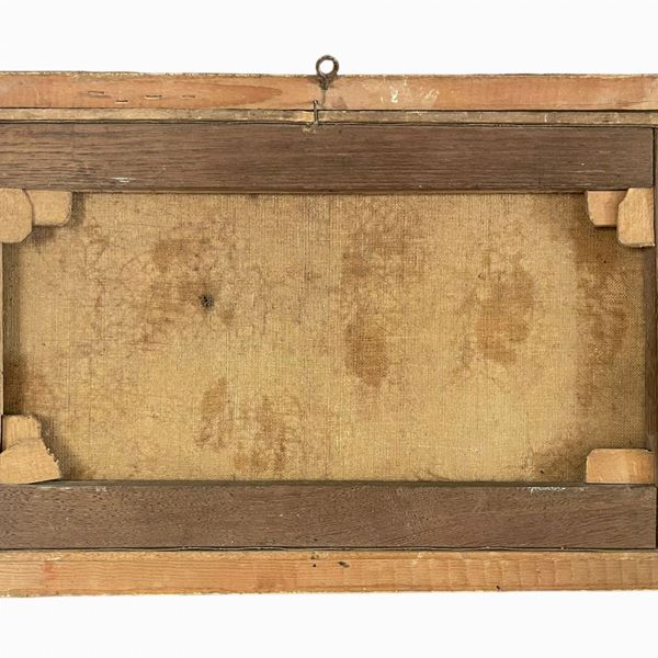 Firmato in basso a destra. l'opera presenta un piccolo foro al centro. In cornice.