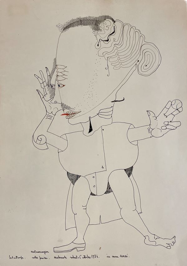 Da un'importante collezione proveniente da Casa Nervi. Scritte autografe del Maestro: Gaetano Pompa Melezzole (casa Nervi) sabato 6-10-1984 Mutmassungen sulla paura. In cornice.