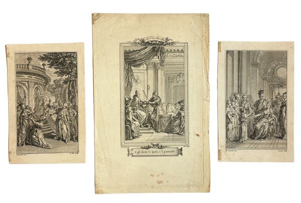 Quattro Inicisioni dal Formione di Terenzio; Tre incisioni La supplica di Aman; Athalia; E gli diede la spada., 1753