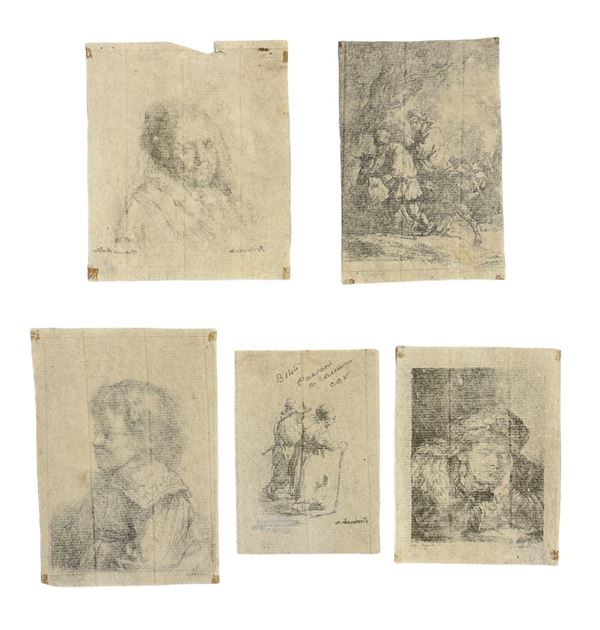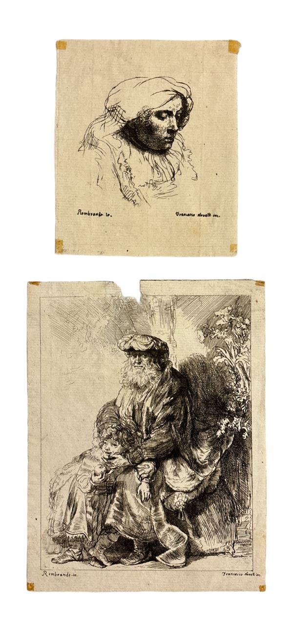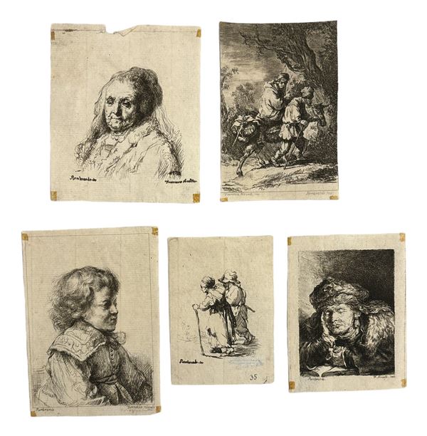 Set di sette incisioni da Rembrandt