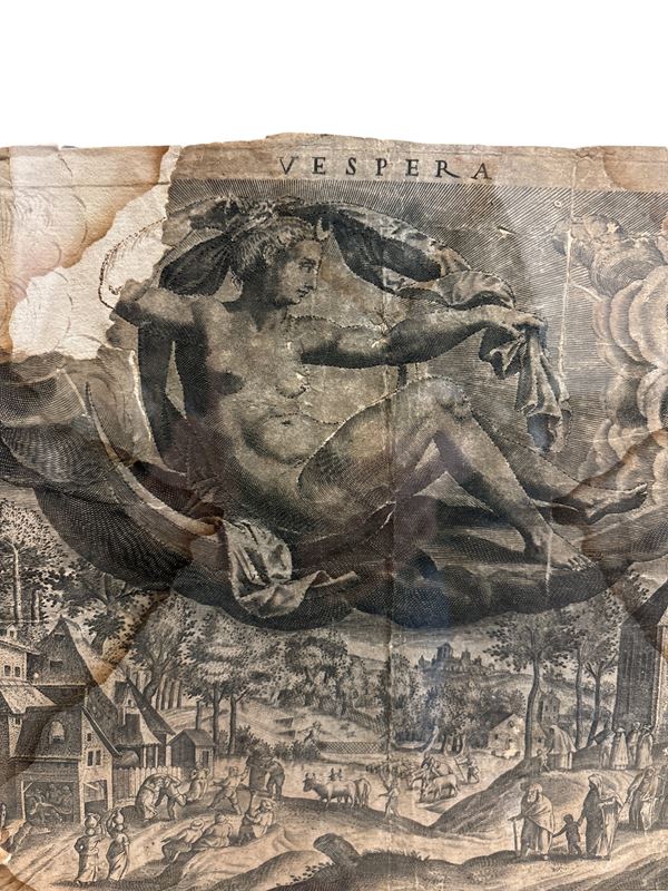 Restauri e mancanze. Rifilato in maniera irregolare. In cornice.