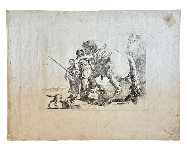 Il cavaliere e il suo cavallo; L'astrologo e il giovane soldato; Tre soldati e un ragazzo; Donna che posa le mani su un vaso, Soldato e schiavo. Dalla serie "I Capricci".