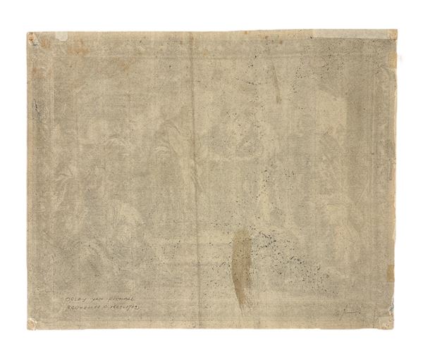 Da Luca Giordano. Applicato per due punti a sinistra a cartoncino moderno. Rifilato alla battuta del rame, parzialmente visibile. Iscrizioni in lastra.