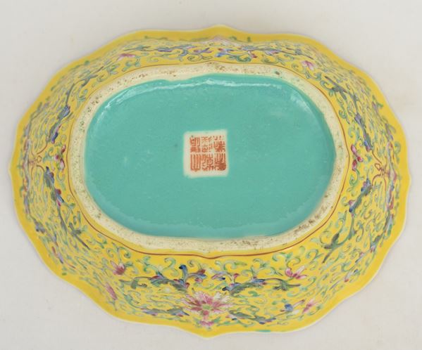 In porcellana policroma decorata a motivi floreali. Marchio alla base.