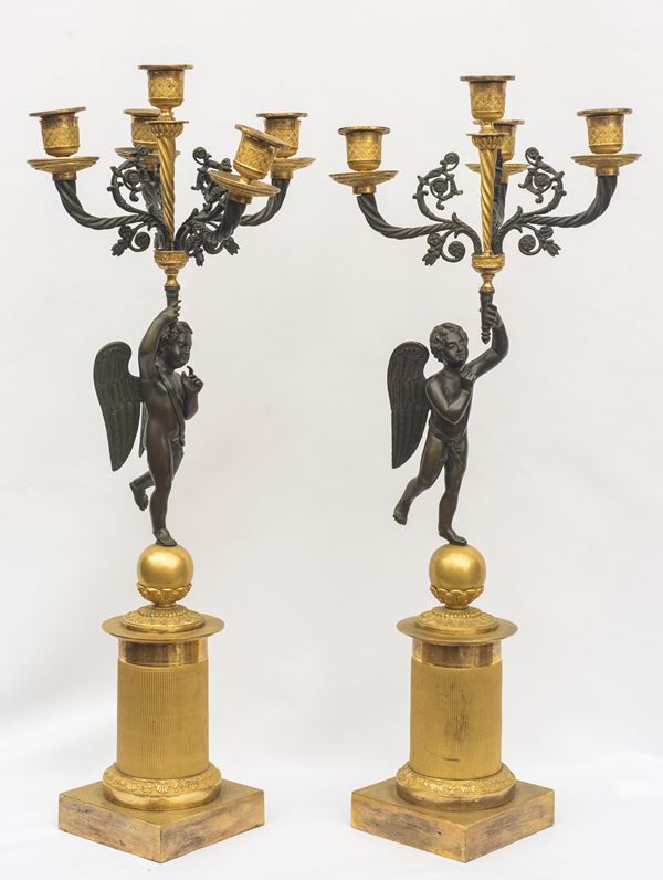 Coppia di candelabri, Manifattura francese, prima metà XIX secolo