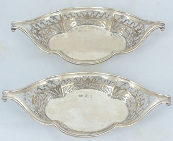 Coppia di cestini in argento 800, York, fine XVIII - inizio XIX secolo