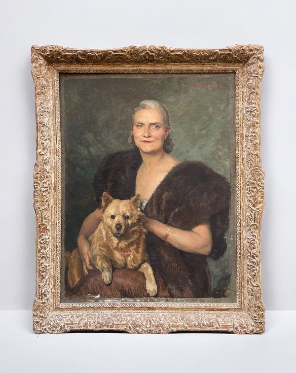 Firmato e datato in alto a destra. In cornice in legno intagliato decapato di linea Luigi XV, prima metà del XX secolo.