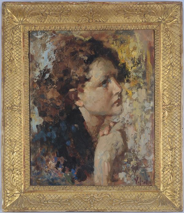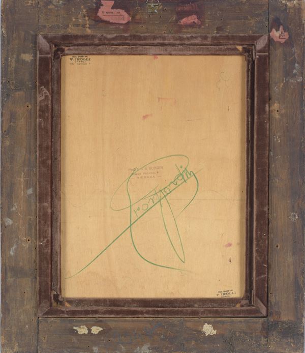 Firmato in basso a destra. Al retro reca timbro "Prof. Eros Bordin - Vicenza" con firma a matita e doppio timbro "Vincenzo Irolli - Napoli". Entro cornice in legno dorato.