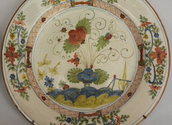 in maiolica policroma a gran fuoco, a decorazioni floreali