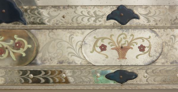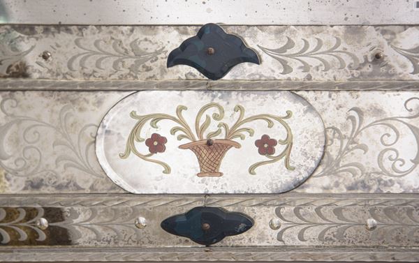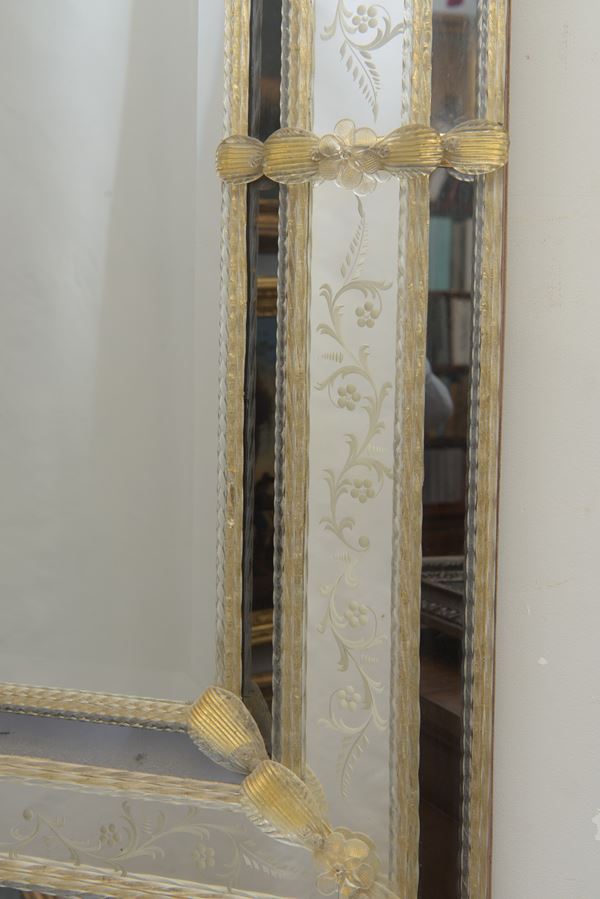in vetro di Murano, con decorazioni a motivi vegetali e floreali incise ad acido. Difetti e mancanze.