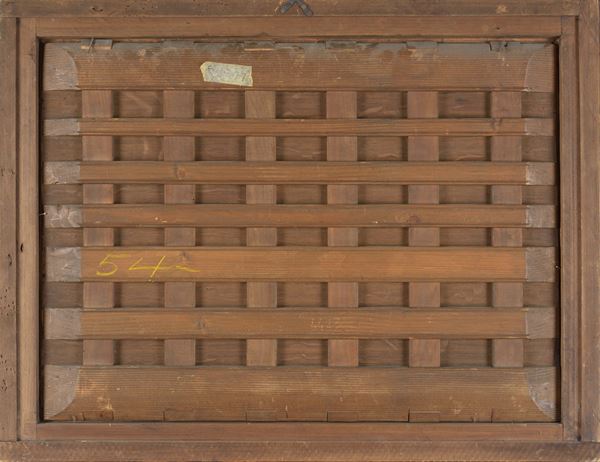 Il dipinto, tratto dal celeberrimo autoritratto conservato alla Gemaldegalerie di Berlino, presenta una piccola variante identificabile nello spartito posto a terra di fronte al pittore intento a suonare il violoncello. In cornice.