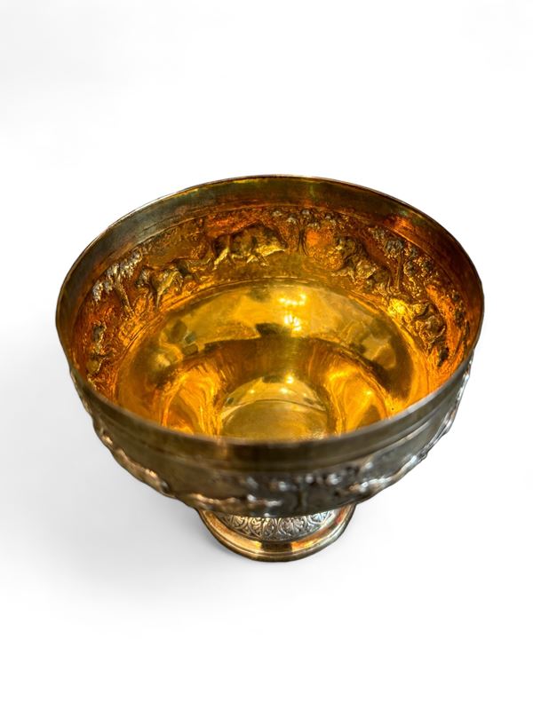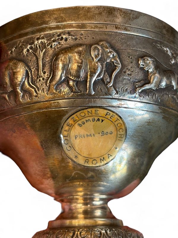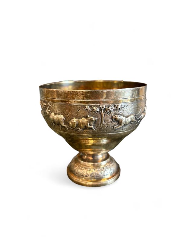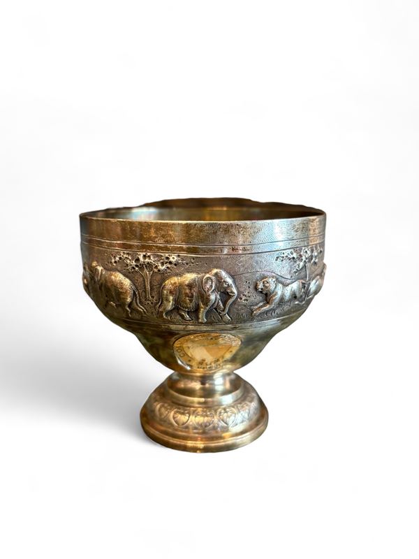 Argento inciso e sbalzato a motivi animali. Peso 220 gr. Timbro dell'orefice impresso alla base.