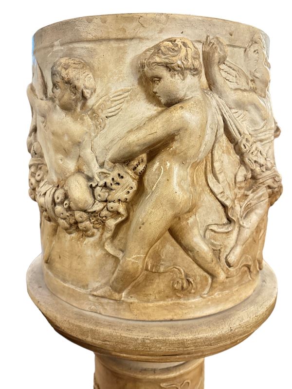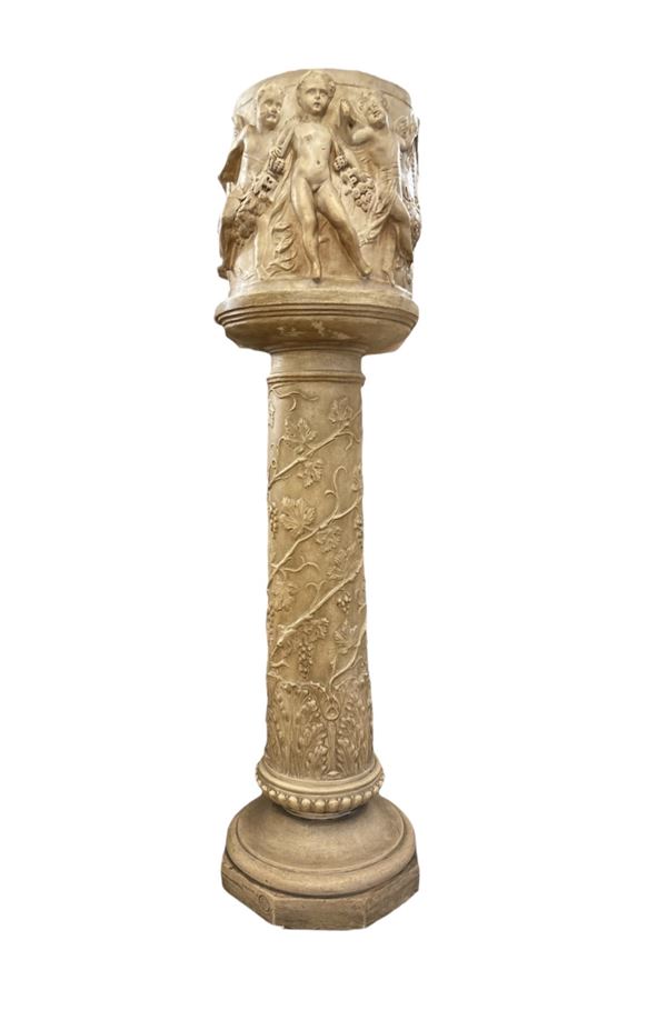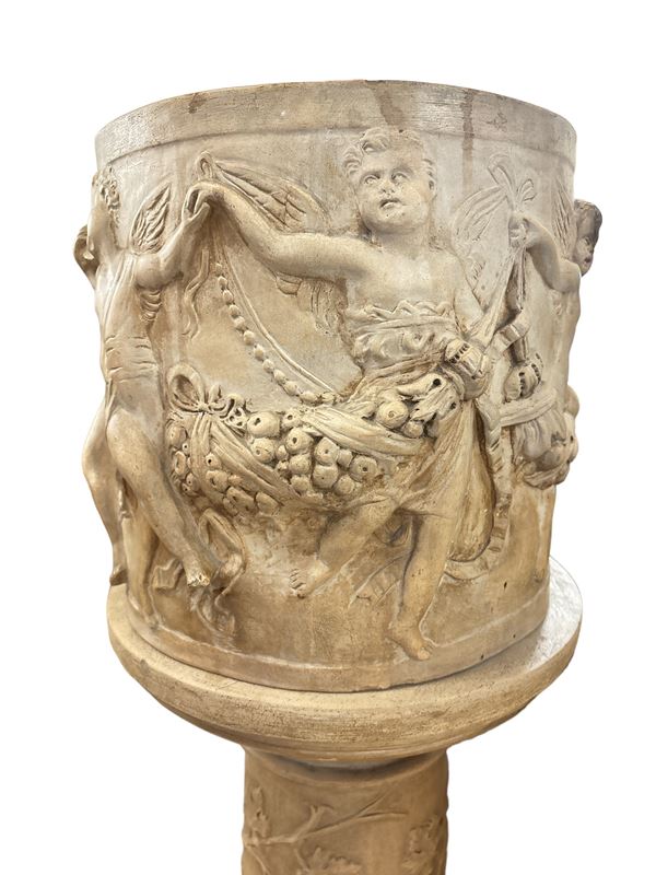 in terracotta decorata a tralci d'uva e amorini danzanti.