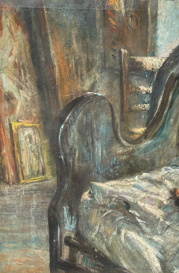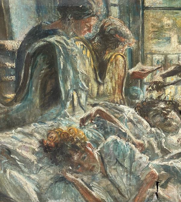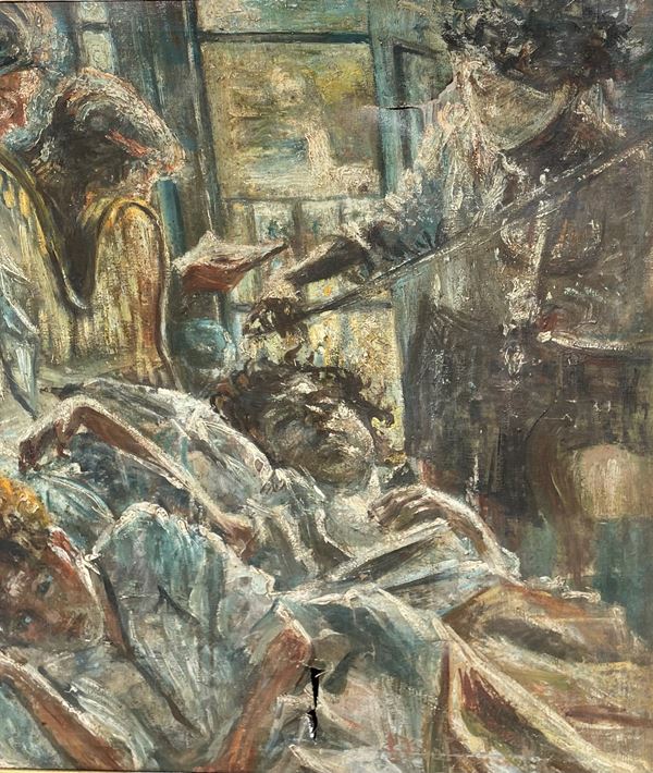 Firmato in basso a destra. Entro cornice. Fenditura alla tela.