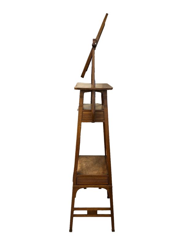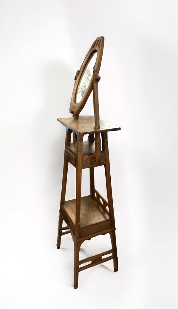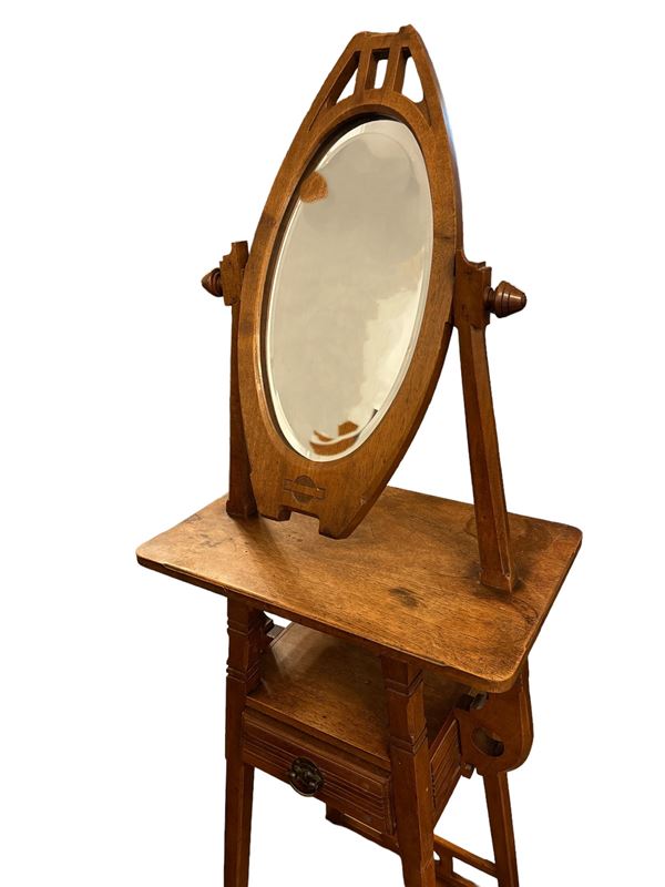 in legno di noce, con specchio ovale basculante e due cassetti. Manifattura italiana, periodo liberty
