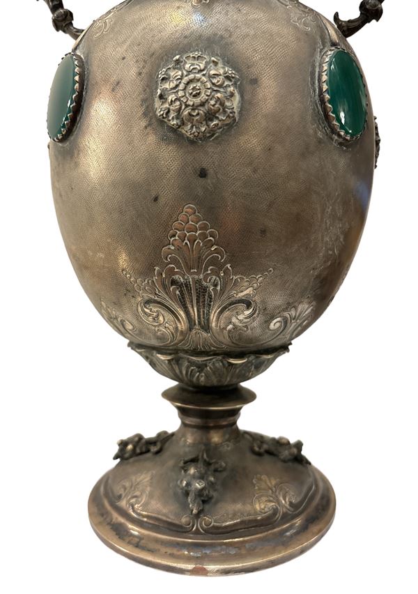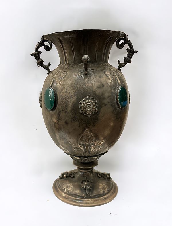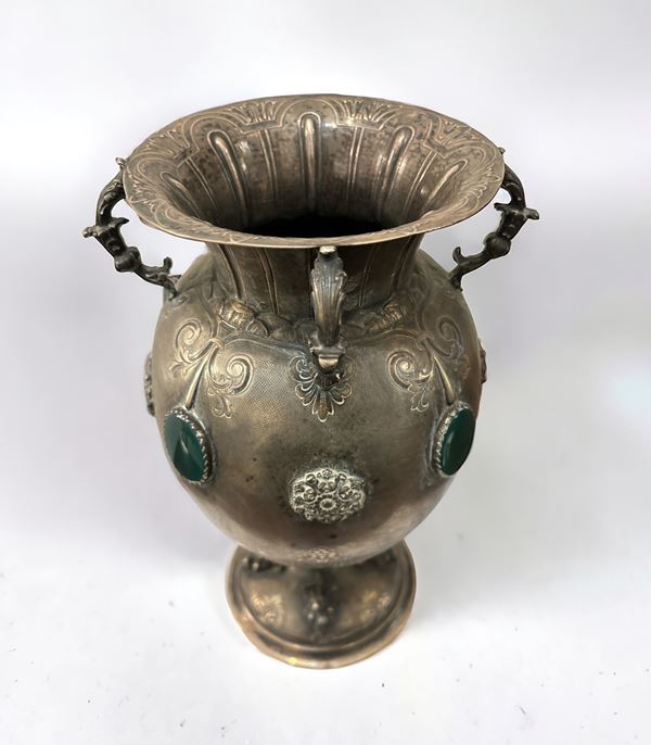 Vaso portafiori in metallo argentato, manifattura italiana prima metà del XX secolo