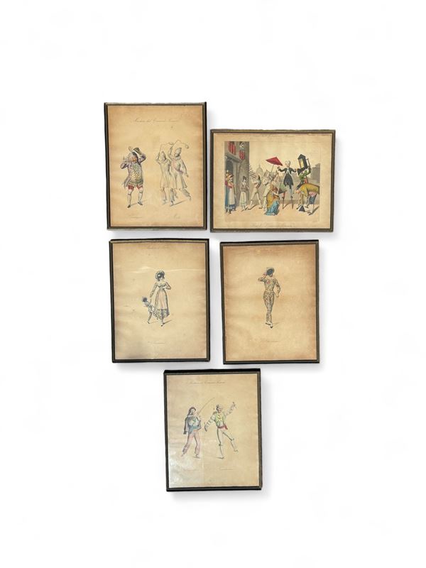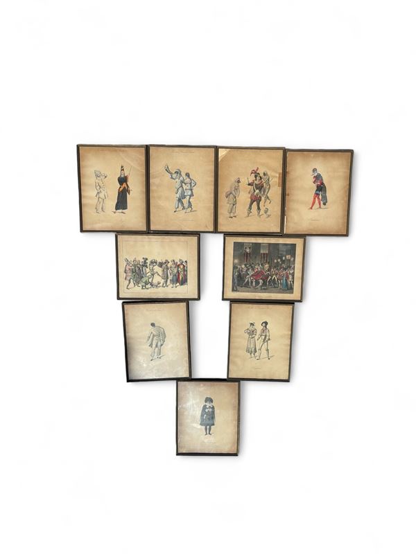 20 stampe raffiguranti maschere di carnevale romano, XIX secolo