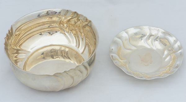 Ciotola e piattino in argento 800 Peso 630 gr., XX secolo