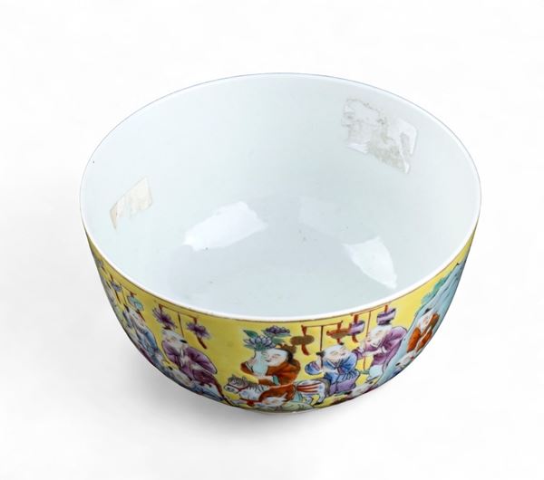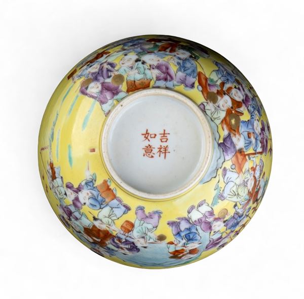 A smalti policromi. Decorata su fondo giallo da rappresentazioni di bambini.