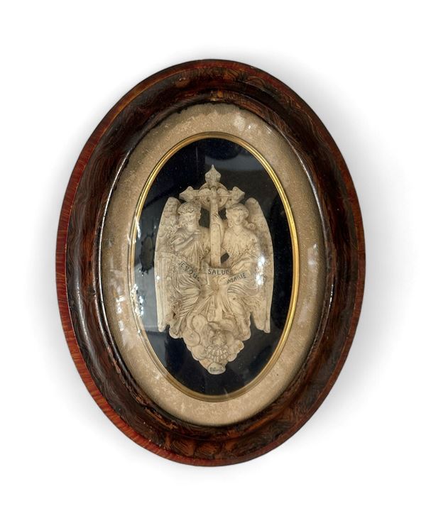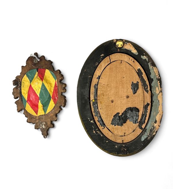 Raffigurante la Vergine, dimensioni: 8 x 7 cm. Raffigurante coppia di Angeli, dimensioni: 14 x 8 cm. In cornice.