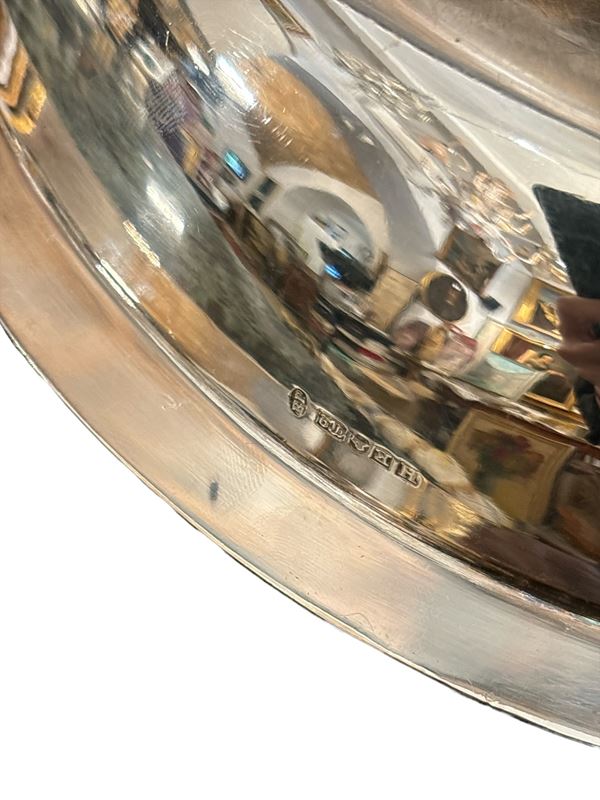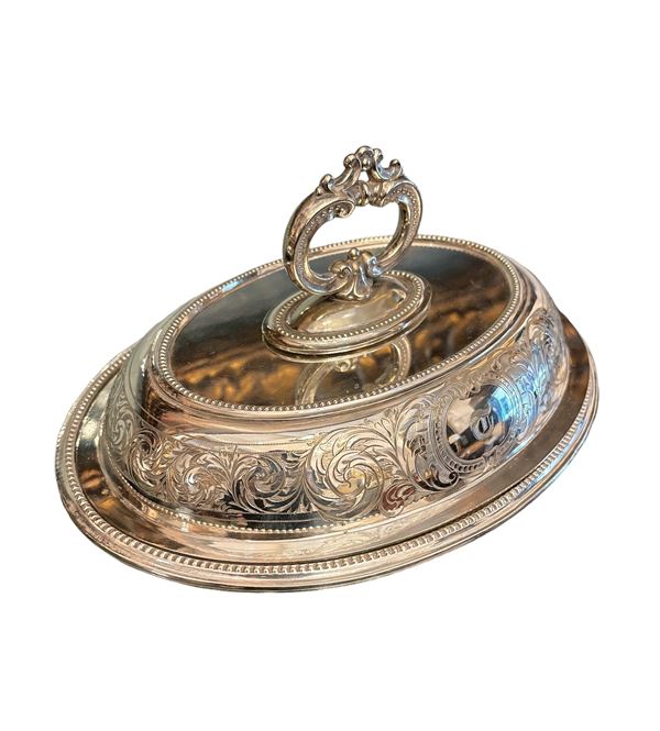 In metallo argentato inciso a motivi floreali.