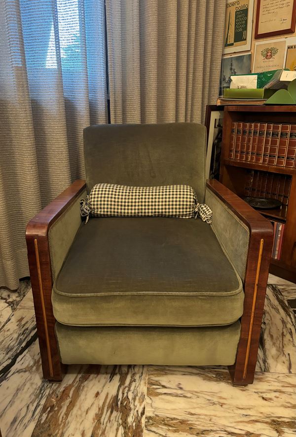 Imbottite e rivestite in velluto verde. Smontaggio e trasporto a carico dell'acquirente da effettuarsi presso un'abitazione privata di Roma.