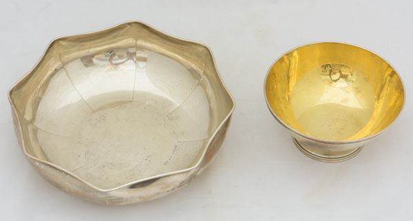 Grande ciotola e ciotolina in argento 800 Peso 930 gr., XX secolo