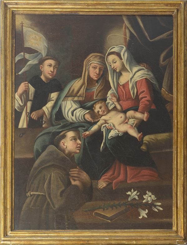 Madonna con bambino, Sant'Anna, Sant'Antonio da Padova e San Domenico, Scuola Genovese, fine XVII - Inizio XVIII secolo