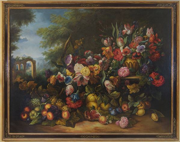 Natura morta con fiori e frutta, Fine XIX secolo - inizio XX secolo