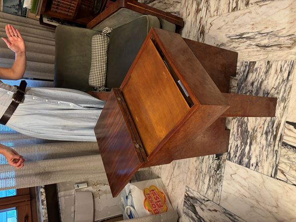 Tavolino con doppio scomparto e sgabello (H. 39 x 30 x30 cm). Smontaggio e trasporto a carico dell'acquirente da effettuarsi presso un'abitazione privata di Roma.