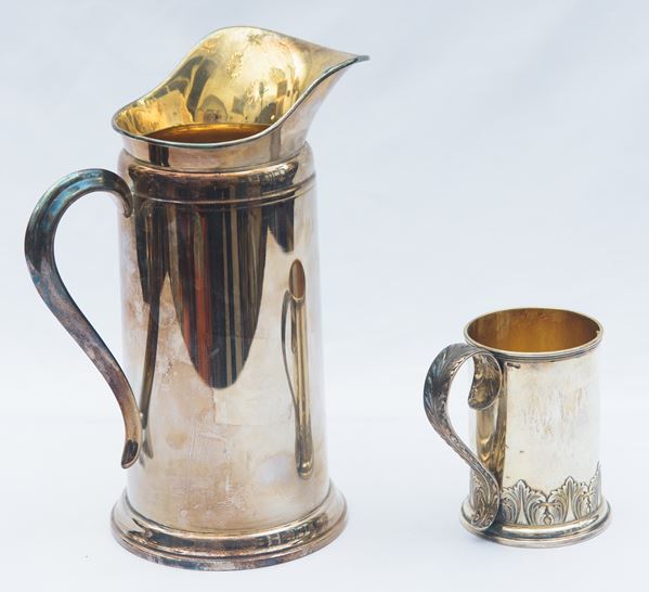 Una caraffa e un boccale in argento 800 Peso totale 1018 gr., Manifattura italiana, XX secolo