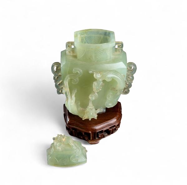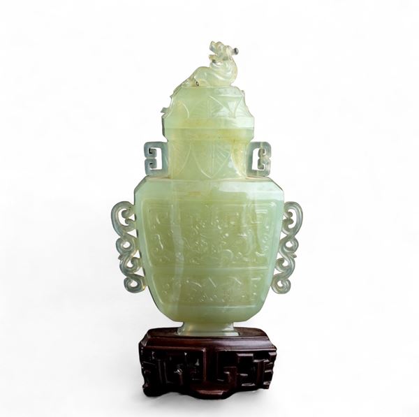 Vaso con coperchio in giada, Cina, XX secolo