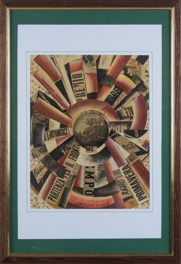 Rivista "Il Tempo" anni '40 del XX secolo. Firmato in basso al centro. In cornice.