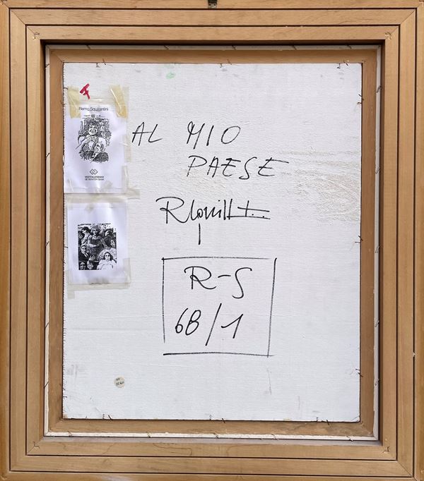 Firmato in basso a destra. Al retro, titolato, firmato e iscritto.