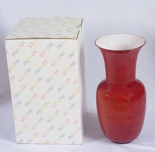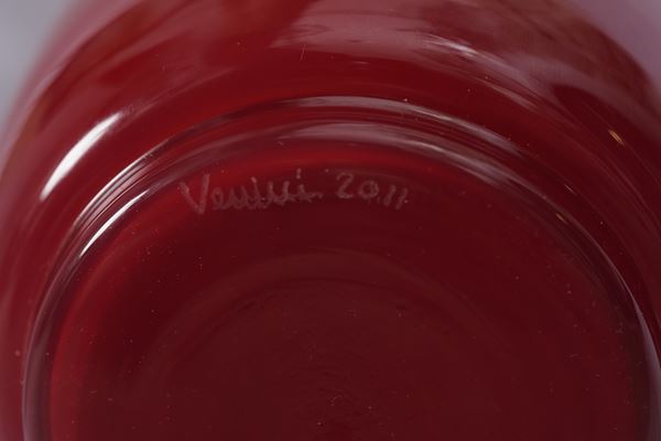 Color Magenta. Marchio al retro inciso "Venini 2011". Etichetta presente, cartoncino di garanzia e scatola originale ancora presenti.