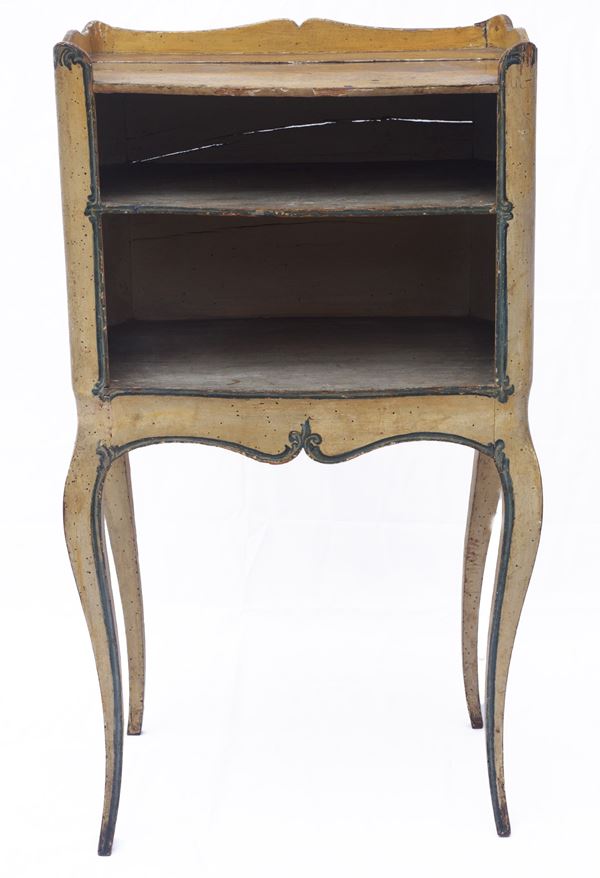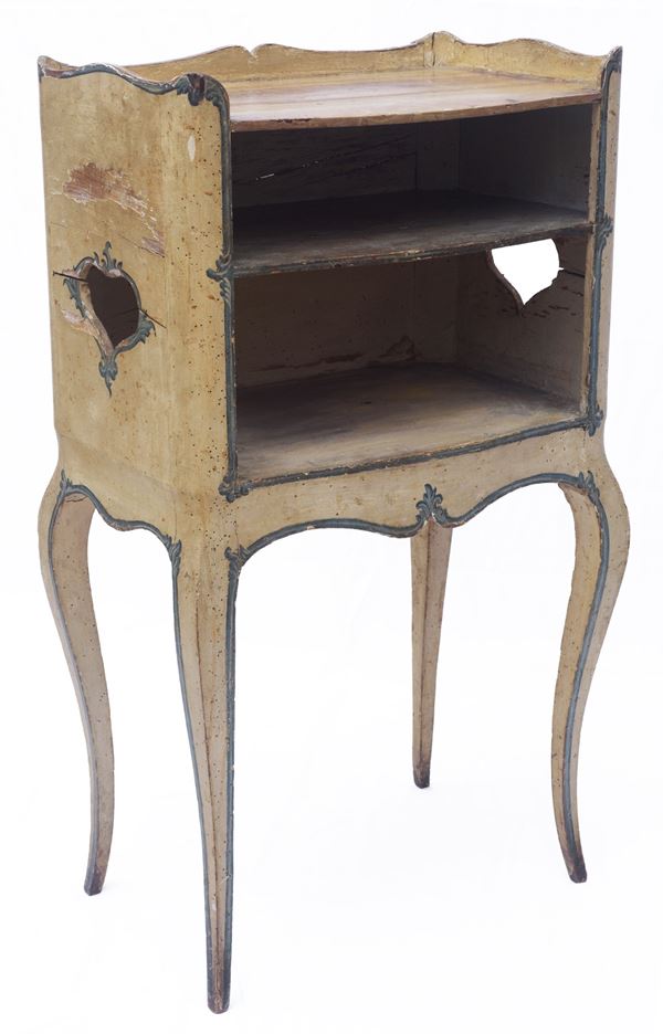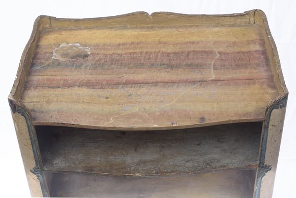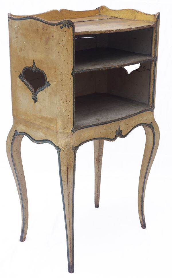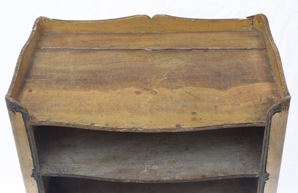 in legno laccato, con ripiani a giorno. Piano superiore a finto marmo. Periodo Barocchetto genovese. Restauri e mancanze. Provenienza: dalla collezione d'arte di un importante Hotel di Via Veneto - Roma.