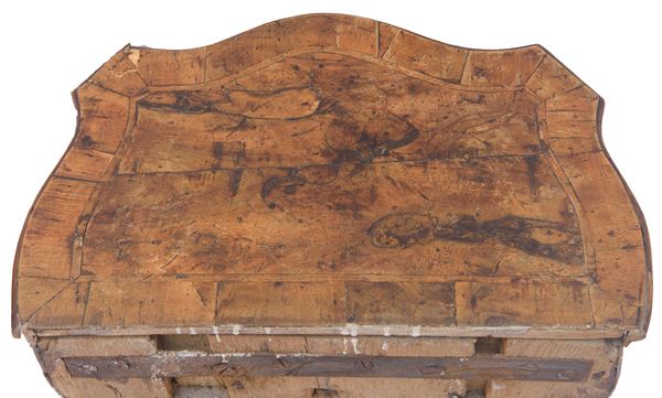 di forma centinata, lastronato in legno di noce e radica di noce. Periodo del barocchetto Veneziano. Provenienza: dalla collezione d'arte di un importante Hotel di Via Veneto - Roma.