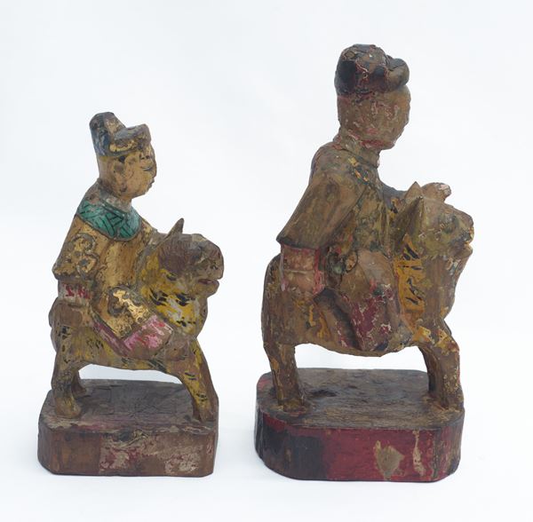 Raffiguranti personaggi cavalcanti animali. Manifattura cinese.